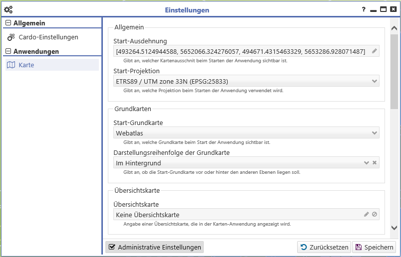 Die Startausdehnung passt nicht zum aktuellen Projekt? Die Daten sind auf der eingerichteten Hintergrundkarte nicht zu erkennen?