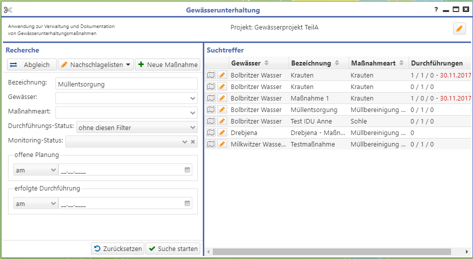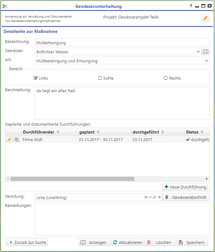 Die Gewässerunterhaltung ist eine Anwendung für Kommunen zum Beschreiben von Maßnahmen an Gewässern bzw. Gewässerabschnitten. Diese wurde für das LRA Bautzen entwickelt.
